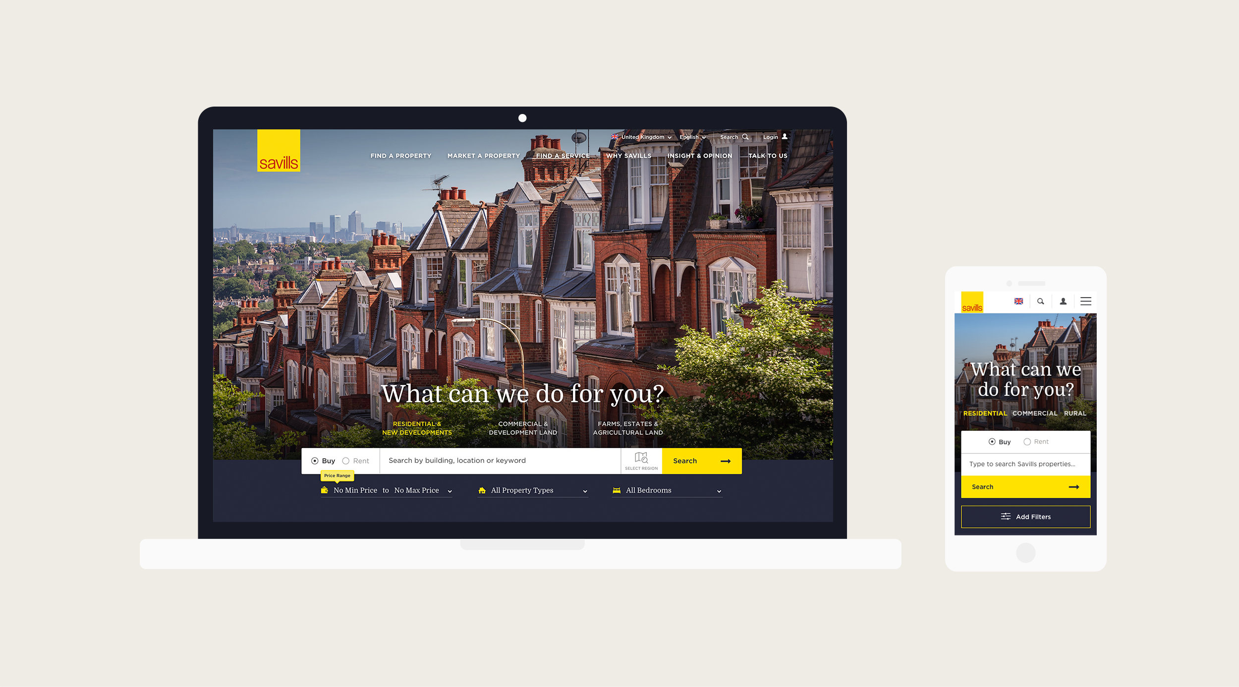 Savills operates across more than 700 offices worldwide. The brief was to strengthen its position as a market leader by rethinking how customers search, explore and engage with property online.